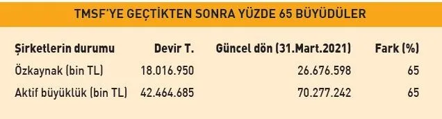 Bugün 783 şirketi kayyum olarak yönetiyoruz. 115 şirkette pay kayyumu, 103 gerçek kişinin de mal varlıklarına kayyum olarak atandık. 783 şirketin 31 Mart tarihi itibarıyla, aktif büyüklükleri 70.28 milyar TL, özkaynakları 29.68 milyar TL oldu. 2020 yılı ciro toplamları 37.52 milyar TL, kârları ise 3.4 milyar TL olarak gerçekleşti. Bu işletmelerde istihdam edilen çalışan sayısı 44 bin 415 kişi. TMSF'ye devrolmalarından bugüne kadar şirketlerin aktif büyüklükleri ve özkaynakları yüzde 65 oranında arttı. Milletin emanetine halel getirmemiş olmanın mutluluğu içindeyiz.