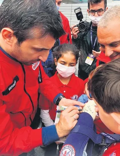 Kimi fotoğraf çektiriyordu, kimi alçısına imza alıyordu, kimi de hayalini anlatmaya çalışıyordu.