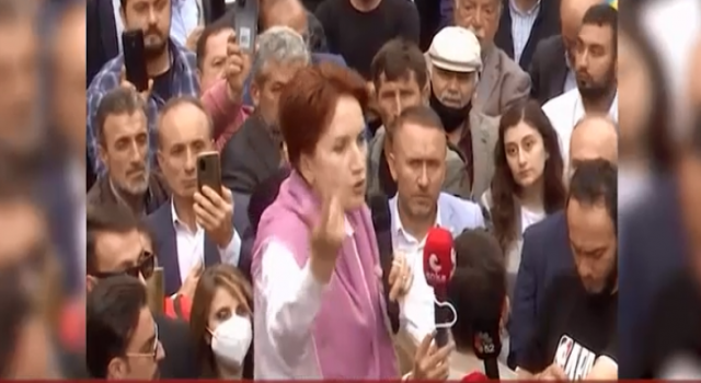İYİ Partililer, bir şeyler söylemeye çalışan vatandaşı tartaklayarak uzaklaştırırken Akşener'in ise "Sana saygı duyuyorum" dediği duyuldu.