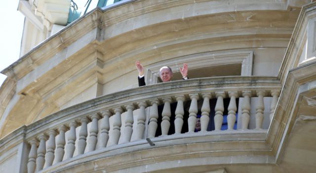 Cumhurbaşkanı Erdoğan, önce konakladığı otelin balkonunda vatandaşları selamladı.
