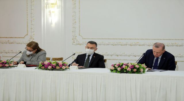Cumhurbaşkanı Yardımcısı Fuat Oktay, Cumhurbaşkanı Recep Tayyip Erdoğan başkanlığında Türkiye Genç İş Adamları Konfederasyonu heyeti ile biraraya gelerek, pandemi sonrası güçlü planlarını ele aldıkları konuşmasında tüm iş insanlarına teşekkür mesajlarını iletti.