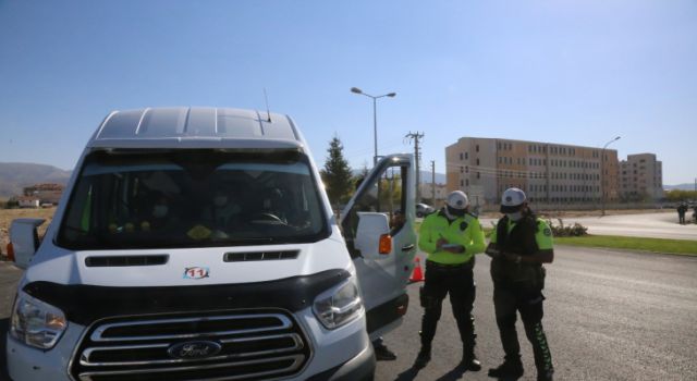 Sürücülerin belgelerini kontrol eden ekipler, okul taşıtındaki öğrencilere sosyal mesafe kurallarına uymaları yönünde hatırlatmalarda bulundu.