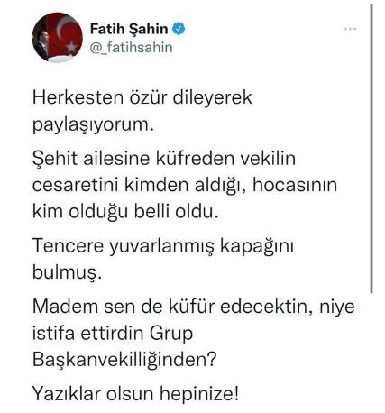 ŞAHİN: "ŞEHİT AİLESİNE KÜFREDEN VEKİLİN CESARETİNİ KİMDEN ALDIĞI, HOCASININ KİM OLDUĞU BELLİ OLDU"