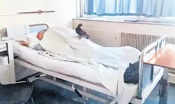 Fotoğrafı bir hemşire, çalıştığı hastanede çekmiş. Altına da şu notu yazmış: "Bu hasta, hastaneye geleli 23 gün oldu ve 23 gün boyunca ailesinden kimse ziyaretine gelmedi. Ama bir güvercin var ki, günde bir gelir, yatağına girer, biraz orada kalır, sonra uçar gider..."