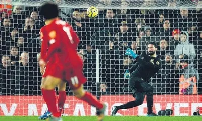 Liverpool sahasında konuk ettiği Manchester City'i Muhammed Salah'ın tek golüyle yendi. Bu golün asistini ise topu kontrol ettikten hemen sonra rakip yarı alanda savunmacıyla birebir kalan Salah'a harika bir pas gönderen Brezilyalı kaleci Alisson Becker yaptı.