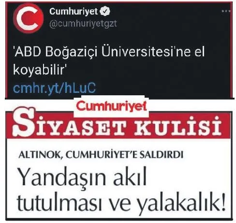 ABD, Boğaziçi arazisine el koyabilir" şeklindeki utanç verici haberlerinin ardından eleştirdiğim Cumhuriyet gazetesinden cevap geldi.
