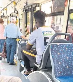 Fotoğrafta bir belediye otobüsünde Yeni Malatyaspor'un antrenmanına giderken görülen Ndayishimiye, 2020 yılında Afrika'nın en fakir ülkelerinden Burundi'den Malatya'ya gelmişti.
