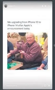 iPhone 14 tanıtımından sonra sosyal medyada en çok RT yapılan paylaşım "iPhone 13'ü iPhone 14 ile değiştiriyorum" diye yazan ve ekose gömlek giyen bir adamın aynı ekose gömleklerden bir tane daha aldığı için sevindiğini gösteren bir caps'ti.