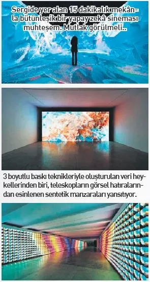 "Los Angeles'ta yaşayan Anadol, beş yıl boyunca 'Bir makine, öğrenirse rüya görebilir mi?' sorusunun peşinden gidip NASA (Amerikan Uzay Ajansı) destekli araştırmalarının sonucunda bu sergisini oluşturmuş. Sergideki eserler, uzay teleskopları tarafından kaydedilen 2 milyondan fazla görüntüyle, şimdiye kadar bir sanat yerleştirmesinde (enstalasyonunda) kullanılan, en büyük uzay temalı veri (data) kümesinden oluşuyor. Sanatçının bugüne kadar gerçekleştirdiği en kapsamlı kişisel sergisi olan 'Makine Hatıraları: Uzay', astronomik araştırmaların insanlık tarihindeki yerini gözler önüne serip izleyiciye uzayla ilgili yeni bir sanatsal bakış açısı sunuyor" diye okuyunca iyice meraklandım.. Hemen Daily Sabah Genel Yayın Müdürü, Sevgili Kardeşim İbrahim Altay'ı aradım. Kültür ve sanatı yakından izleyen bir yazarı var. İrem Yaşar.. İngilizce gazetemizde harika bir yazı kaleme almış.. "Bize de yazar mı" dedim.. Bu, dedim ya, dünyada tartışma uyandıran yeni sanat dalı ve de bizden sanatçı Refik Anadol, Los Angeles'tan ayağımıza, Dolapdere'ye gelmiş. (Irmak Caddesi, No 25), Pilevneli Galeri'ye.. Gidip görmesek de bilelim istedim. Sergi pazar akşamına kadar açık ve ücretsiz..