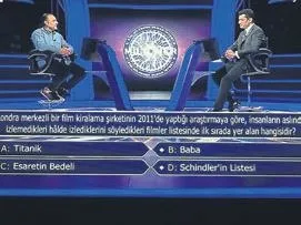 Bu soruyu sormamın nedeni, Atv'nin fenomen bilgi yarışması Kim Milyoner Olmak İster?'de geçen hafta sorulan bir soruydu: "Londra merkezli bir film kiralama şirketinin 2011'de yaptığı araştırmaya göre, insanların aslında izlemedikleri halde izlediklerini söyledikleri filmler listesinde ilk sırada yer alan hangisidir? A) Titanik B) Baba C) Esaretin Bedeli D) Schindler'in Listesi." Yarışmacının "Titanik" tercihi yüzünden elenmesine neden olan sorunun doğru cevabı "Baba" olacaktı. Meğer insanlar Baba'yı izlememiş olmaktan utanırlarmış.