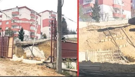 Edirne'de yandaki inşaat yüzünden temeli kayan koca site iki direkle sabitlendi. (!)