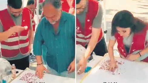 Zafer Partili gençler sokakta stant açıp "siyasi etkinlik" yapmışlar. Masanın üzerine beyaz bir bez serip yoldan geçenlerden parmaklarını kanatmalarını ve beze sürmelerini istemişler.