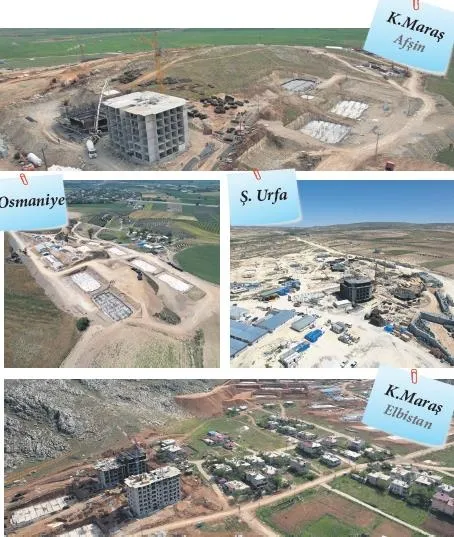 Diyarbakır'da 300, Gaziantep'te 5 bin 107, Hatay'da 6 bin 847, Kahramanmaraş'ta 7 bin 853, Kilis'te 486, Malatya'da 7 bin 131, Osmaniye'de bin 55, Şanlıurfa'da 917 köy evi inşa halinde. Üç ilde (Malatya, Kahramanmaraş, Gaziantep-Islahiye) 936 sanayi sitesi de yapılıyor.