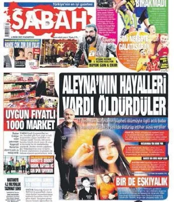 Yine gencecik bir kızımızın, Aleyna Ağgül'ün sır ölümü hepimizin yüreğini dağladı. Ağgül'ün şüpheli ölümü ardında onlarca soru bırakırken, aklıma Şule Çet, Aleyna Çakır, Esra Hankulu gibi benzer kaderi yaşayan kızlarımız geldi. Mevlüt Tezel'in de köşesinde belirttiği gibi; kadına şiddetin ve kadın cinayetlerinin, basın organlarında daha fazla yer alması, yargı sürecinin hızlanması ve caydırıcı cezalar verilmesi açısından büyük öneme sahip. Failler ne kadar çabuk cezalandırılırsa mağdur ailelerin de kamu vicdanının da bir nebze de olsa yüreğine su serpilir. Bu açıdan SABAH gazetesinin Aleyna Ağgül'ün şüpheli ölümüne dair manşetten verdiği haberi son derece önemli buluyorum. Medyanın böyle haberleri veriş biçimi de elbette ki son derece önemli. Geçtiğimiz yıllarda belki hatırlarsınız, 'bir gazetenin' kadına şiddet haberini verme şekli çok tartışılmıştı.