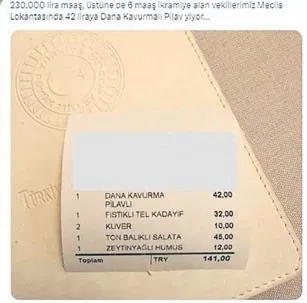Geçtiğimiz haftalarda Meclis Lokantası'nda 141 TL tutan yemek fişi çok tartışılmıştı.
