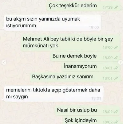 Elbette Ece, Instagram'da bikinili pozlar verse de, Tiktok'ta göğsünü gösterse de Erbil'in "Seninle bu gece yatmak istiyorum", "Git memelerini aç Tiktok'ta" gibi mesajlar atmasının savunulacak bir yanı yok.
