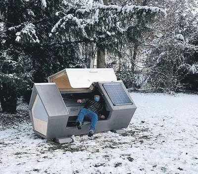 ALMANYA'DA evsizlerin uyuduğu park ve diğer alanlara rüzgâr ve suya dayanıklı uyku kabinleri yerleştiriliyor.