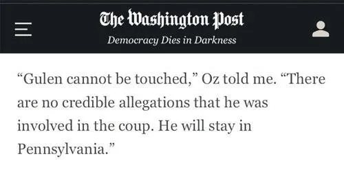Çelişkiye bakar mısınız? Eğer Josh Rogin'in yazdıkları doğruysa Öz, "Öncelikle FETÖ'nün diyarı Pensilvanya'dan tüm dünyaya selamlar!" demiş kadar olmuş