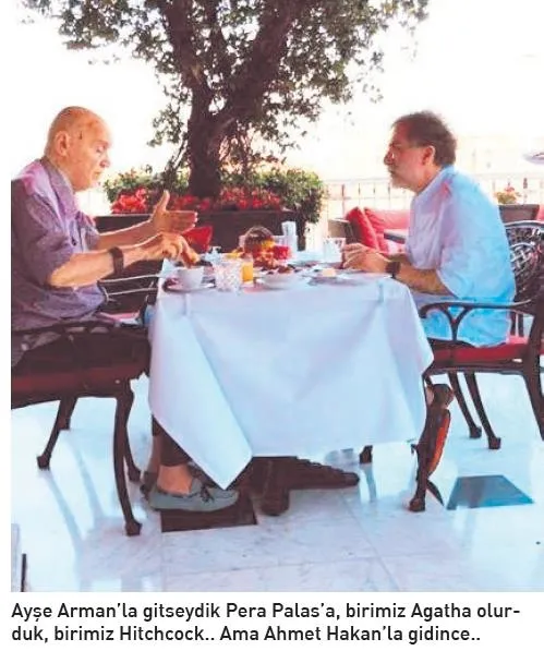 Gazetede haberi okuyunca hemen Ahmet Hakan'ı aradım.. İstanbul'un tarihi oteli Pera Palas, geçmiş yüzyılda orada kalan iki ünlü müşterisi Agatha Christie ve Alfred Hitchcock'un özel kahvaltı adisyonlarını arşivden bulmuş, polisiye sinema ve edebiyatının bu çok ünlü iki isminin kahvaltılarını servise koymuş..