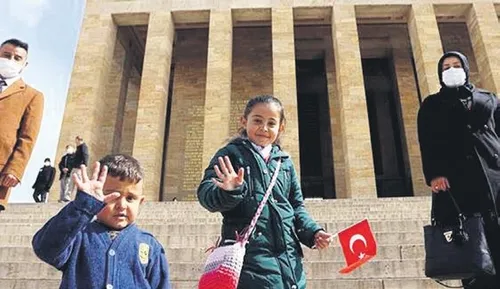 2. Bembeyaz Anıtkabir olur mu?. Pompasına sıvı boya doldurup boyamış da, aslanları ve sütunları. Kızı Hira ve küçük oğlu ellerinde bayraklarla onu seyrederken..