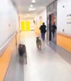 Burası Kocaeli Devlet Hastanesi'nin koridoru... Muhtemelen güvenlik görevlilerinin boşluğuna denk gelip, içeri girmişler.