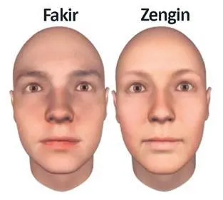 Öte yandan 'fakir' yüzlerin sahiplerinin kaşları daha düşük, çeneleri daha kısa, ağız kenarları ise aşağı dönük oluyor.