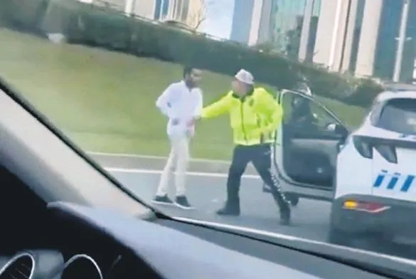 Polis tarafından uyarılan sürücü durmadı. Polis ile adam arasında itiş kakış yaşandı adam yine durmadı.
