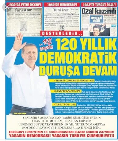 Atatürk başta olmak üzere "devlet, millet, demokrasi, refah için risk, görev ve sorumluluk alan liderleri desteklemenin bir görev bilinci olduğunu bilenlerdeniz" çok şükür ve Turkuvaz Medya'nın ilk yayın organı olan Yeni Asır, işte böyle bir bilinçle yayın hayatını sürdürdü ve bugün Sabah başta olmak üzere bütün mecralarında bu bilinçle yayın hayatına devam ediyor.