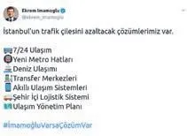 Tüm bu vaatler İstanbul Büyükşehir Belediye Başkanı Ekrem İmamoğlu'na ait. İmamoğlu'nun trafik sorununu çözmeye yönelik daha çok vaadi var ama yazmaya yerim yetmez.