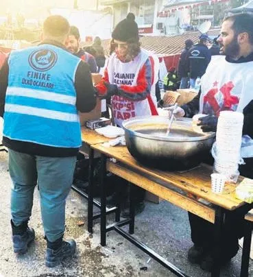 Bana göre felaket sürecinin en anlamlı, en çok mesaj içeren görüntüsüydü. Deprem bölgesinde Türkiye Komünist Partisi'nin gönüllüleri çorba dağıtıyor. Bölgeye can kurtarmak için gönüllü gelen Finike Ülkü Ocakları'nın bir mensubu, onların dağıttığı çorbadan alıyor.