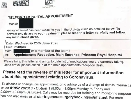 İngiltere'de Telford Hastanesi'nin üroloji kliniğinde randevu bekleyen 16 yaşındaki hastaya, 25 Haziran 2025 tarihine randevu verildi.