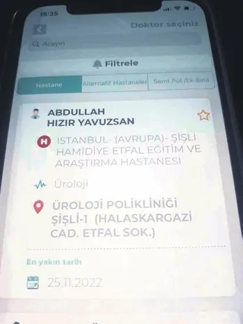 Merak ettim MHRS'ye girdim ve haberdeki gibi üroloji bölümüne randevu almak için ne kadar bekleyeceğimi test ettim.