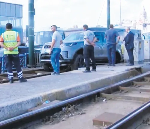 Galata Köprüsü'ndeki tramvay hattına giren bir cip, İstanbul trafiğini altüst etti, insanların hayatını tehlikeye attı.